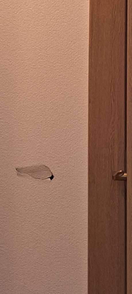 話を詳しく聞いてみると、ドアを勢い良く開け過ぎて壁に穴が空いてしまった様でした。