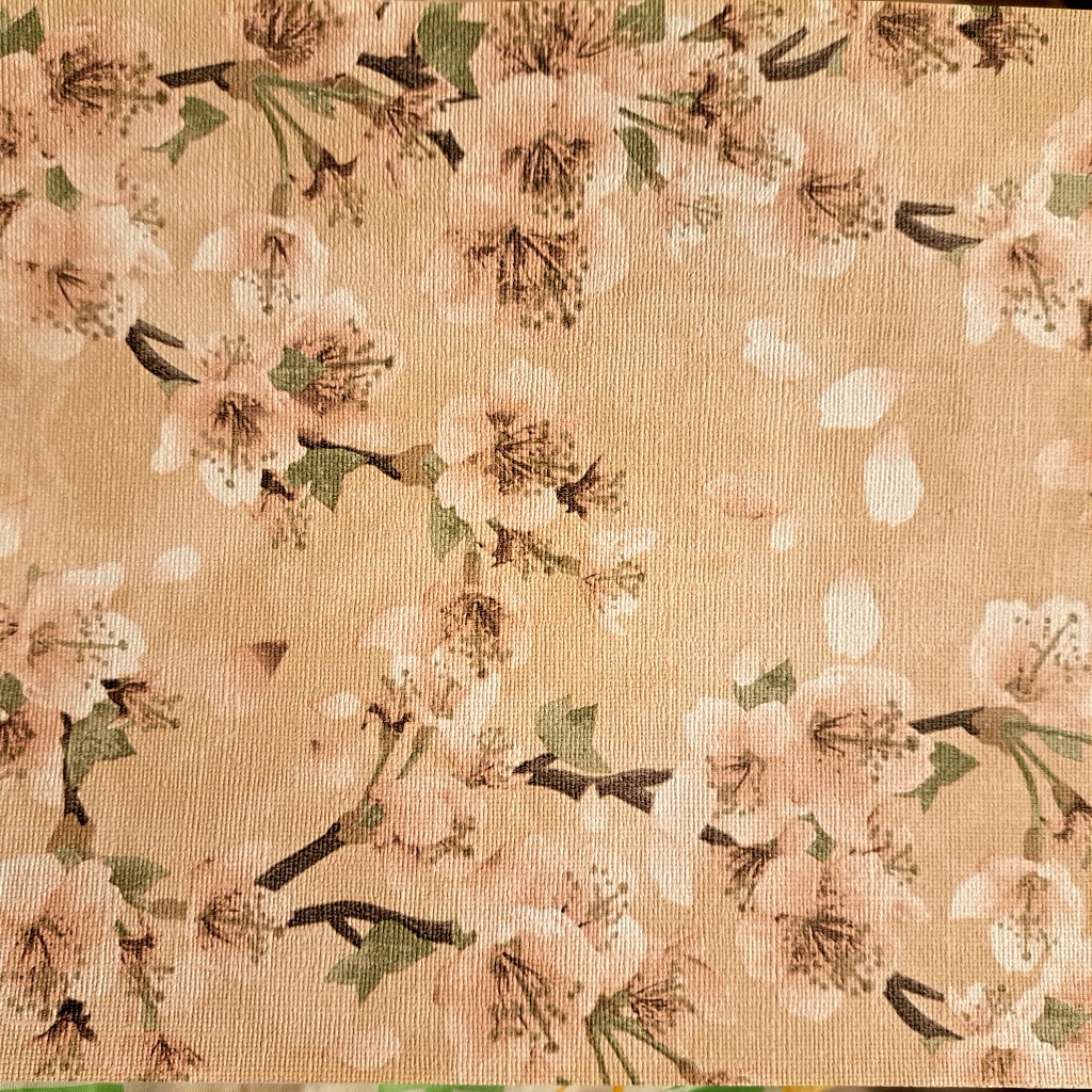 この桜柄の壁紙は落ち着いたトーンに緑色や白色を使って両方の良い所を
