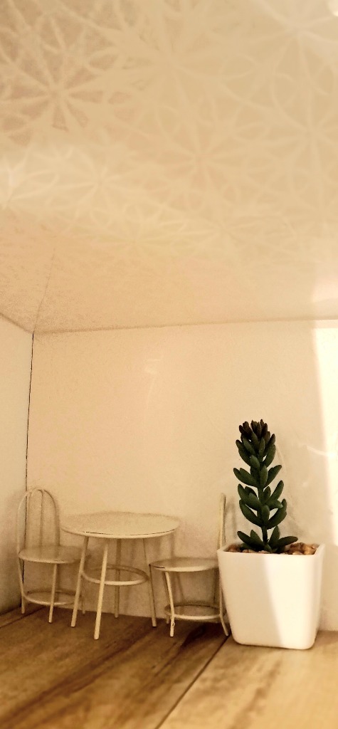 今回は天井にかわいい柄の入った壁紙を合わせて