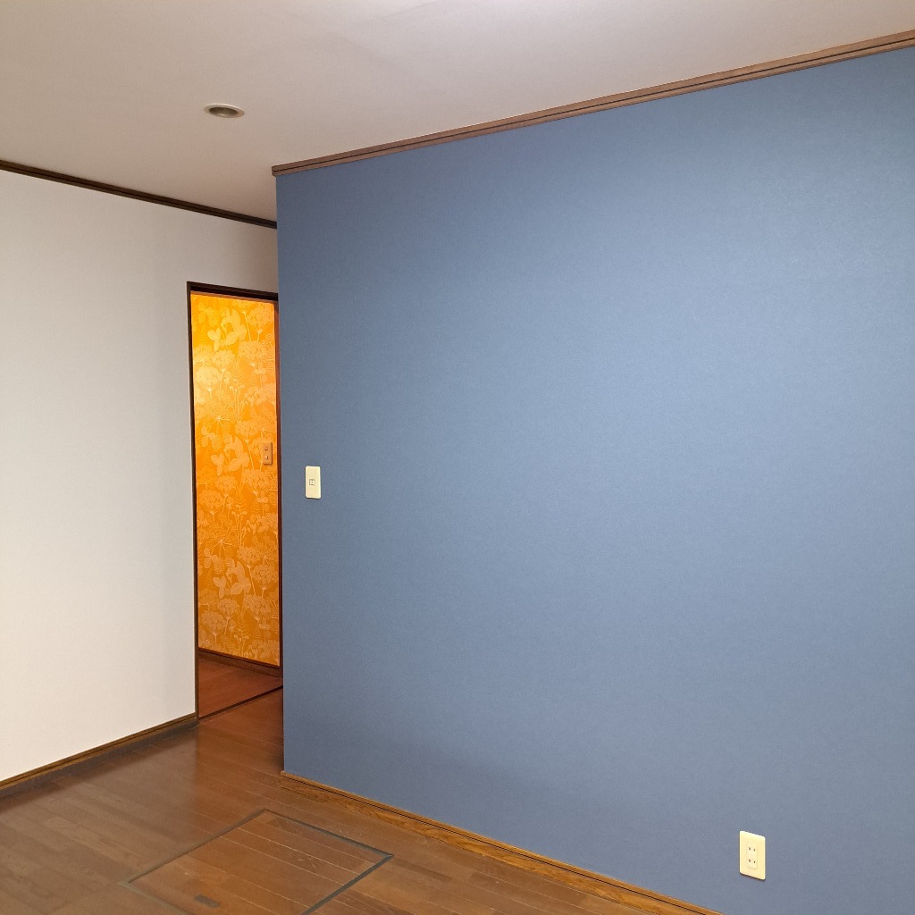青色の壁紙を使用したお部屋が完成しました。