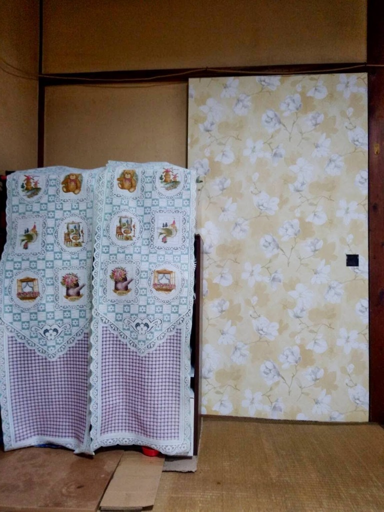 ずっと気になっていたらしく壁紙を貼って来ました。